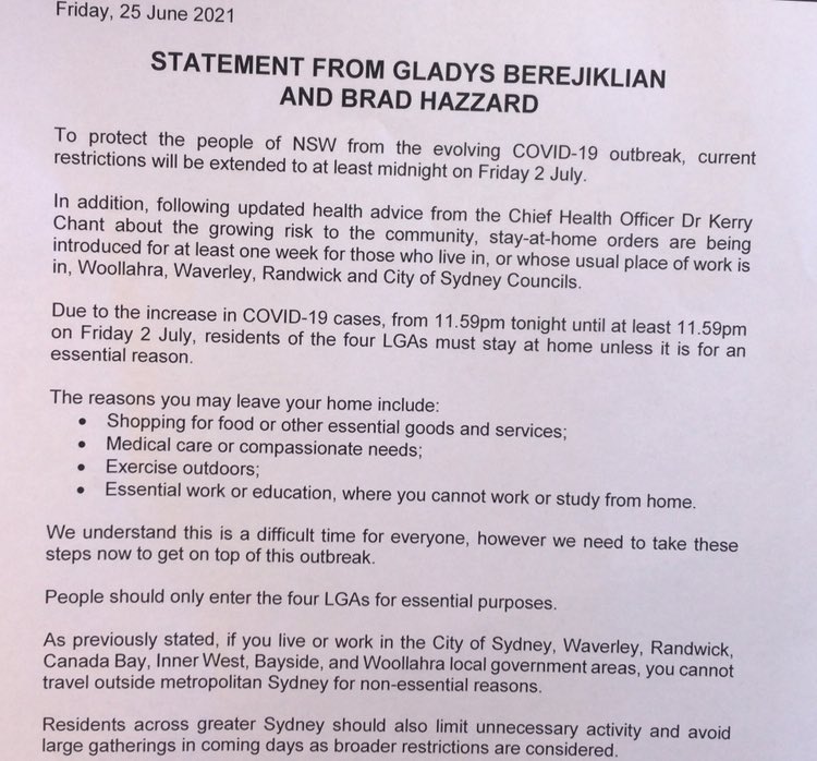 Effective as of 11:59pm tonight anyone who lives or works in the local government areas (lgas) of waverly, woollahra, randwick and city of sydney will now be under stay at home orders. From 6pm friday night, the local government areas of noosa, sunshine coast, ipswich, logan, redlands, gold coast, scenic rim, lockyer valley, somerset and townsville will come out of lockdown. Jun 26, 2021 · sydney lockdown rules explained: Jun 25, 2021 · these lockdown orders are in addition to previous restrictions placed on greater sydney, including canada bay, inner west, and bayside councils in addition to the four locked down lgas. Jun 25, 2021 · the news comes as the state records 11 new cases of coronavirus reported to 8pm (six previously reported on thursday morning) and an additional 17 cases overnight. All of southeast queensland and townsville have been in lockdown for three days to help authorities trace and contain six separate and unlinked. Jun 25, 2021 · nsw covid updates: The conditions you need to know. Four sydney lgas thrown into lockdown: What you can and can't do. Lockdown for 4 sydney lgas, 22 new cases.